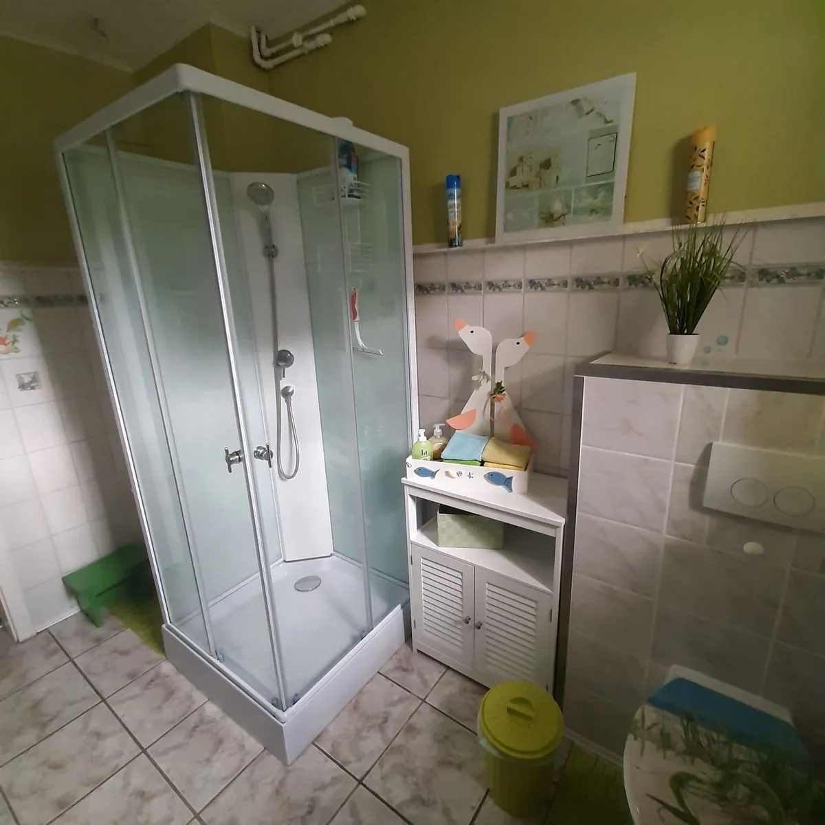 Die Ferienwohnung direkt am See inder Uckermark in Lychen ist 51 m² groß. Sie betreten Sie ebenerdig im Flur mit Garderobe und Kommode. Von hier gelangen Sie in jeden Raum. Das Bad hat eine Dusche, WC und Schränke. In der Küche finden Sie Schränke, einen Backofen mit Cerankochfeld, eine Mikrowelle, ein Spülbecken, eine Kühl-Gefrierkombination, ein CD-Radio, eine Kaffeemaschine, einen Wasserkocher, eine Brotschneidemaschine, einen Eierkocher, einen Toaster und alles was Ihr Herz begehrt. Des Weiteren steht hier ein Tisch mit Stühlen. Das Wohnzimmer ist ausgestattet mit einer Couch, einem kleinen Tisch, einer weiteren Couch, einem Sessel, einer Anbauwand mit dem Fernseher, Büchern und Gesellschaftsspielen und einem Esstisch mit Stühlen. In einem Schlafzimmer stehen ein Doppelbett, ein Kleiderschrank, zwei Stühle, eine Spiegelkommode, und ein Babybett. Im zweiten Schlafzimmer gibt es zwei Polsterliegen, einen Kleiderschrank, zwei Stühle einen Tisch, einen weiterer Fernseher und Regale voller Spielzeug und Bücher. Besonders Ihre Kinder werden dieses Zimmer mögen. Zur Ferienwohnung gehört eine überdachte Terrasse im Garten, die Sie über das Wohnzimmer ebenerdig betreten können. Dort finden Sie Gartenmöbel, zwei Sonnenliegen und einen Grill. Direkt am See gibt es eine Sitzecke mit Tisch und Bänken, die Sie nutzen können. Vom Garten und der Ferienwohnung aus können Sie jederzeit den Blick auf den See genießen. Ein PKW-Parkplatz ist am Grundstück vorhanden.