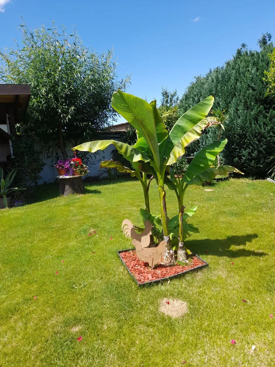 Der Gartenteich ist ca. 3 mal 4 Meter groß und 1,8 Meter tief. Da er nicht eingezäunt ist achten Sie bitte auf Ihre kleinen Kinder!