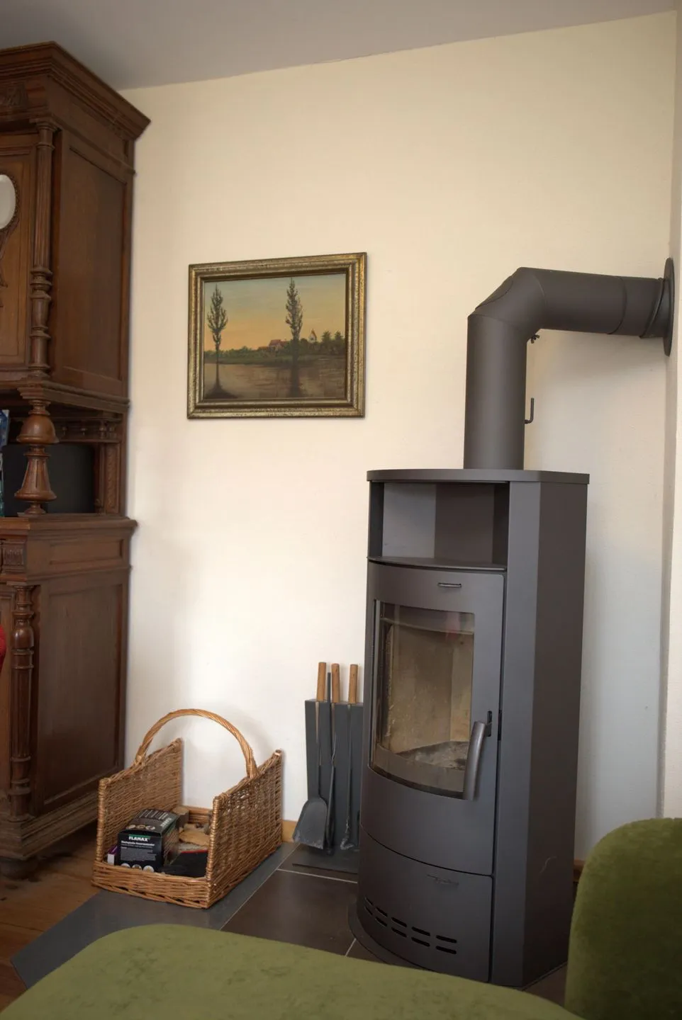 Man muss auch nicht frieren - für Hobbypyromanen gibt es einen Kaminofen im Wohnzimmer und genug Holz.