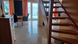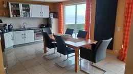 Die offene Küche ist umfangreich ausgestattet und verfügt unter anderem über einen Backofen, eine Mikrowelle, einen Kühlschrank, eine Kaffeemaschine, einen Wasserkocher, einen Toaster sowie einen 4-Platten-Herd. Kochbegeisterte Gäste profitieren von modernen Geräten und können ihre Mahlzeiten bequem am Esstisch im Wohnbereich oder auf der möblierten Terrasse im Freien genießen. Der Essbereich ist harmonisch in den Wohnraum integriert, der mit einem bequemen Sofa, TV und HiFi-Anlage ausgestattet ist. Für angenehmes Raumklima und Wohlbehagen sorgen eine Fußbodenheizung sowie eine zentrale Heizungsanlage.