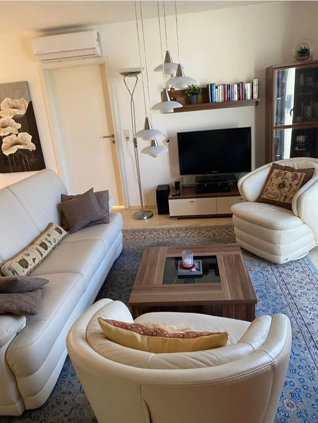 Das modern eingerichtete, lichtdurchflutete und sehr geräumige Maisonette-Appartement mit KLIMAANLAGE, SAUNA und KAMIN befindet sich im 1. OG und Dachgeschoß der Villa Harmonie.