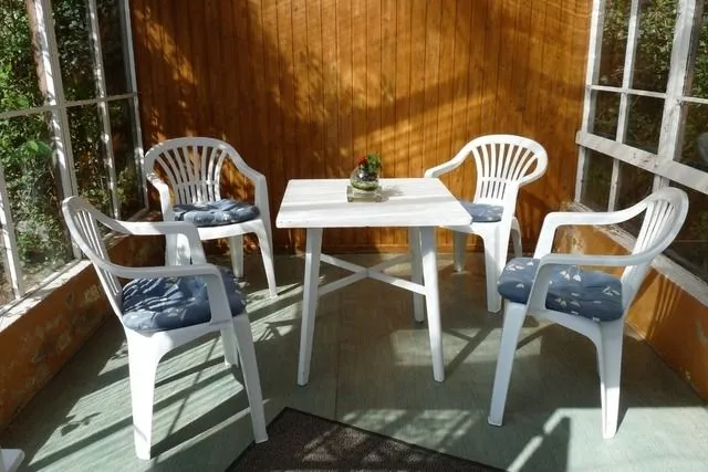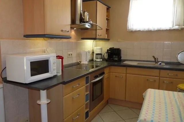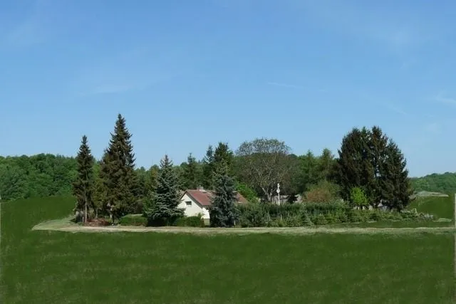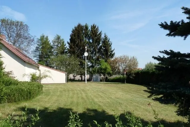 Das Ferienhaus im Grünen betreten Sie im Flur mit Flurgarderobe und einer Sitzbank. Von hier gelangen Sie in das Wohnzimmer mit zwei Couchen, einem Sessel, einem kleinen Tisch und dem Fernseher. Im Erdgeschoss befinden sich auch das Bad mit Dusche, Waschbecken, einem Hocker und dem WC, sowie die Küche und das Esszimmer. In der Küchenzeile befinden sich ein Spülbecken, ein Geschirrspüler, ein Herd mit Cerankochfeld, ein Kühlschrank mit Tiefkühlfach, eine Kaffeemaschine, ein Wasserkocher, ein Toaster und eine Brotschneidemaschine. Neben der Küchenzeile steht ein Tisch mit zwei Stühlen. Das nächste Zimmer ist das Esszimmer. Hier finden Sie einen großen Esstisch, ein Buffet, eine Kommode und ein Radio. Über eine schmale Treppe mit teils niedriger Kopffreiheit gelangen Sie ins Obergeschoss. Dort gibt es drei Schlafzimmer und ein Gäste-WC mit Waschbecken. Im oberen Flur sind eine Truhe und geräumige Einbauschränke in die Dachschräge eingebaut worden. So haben Sie genügend Platz zum Unterbringen für Ihre Garderobe und Koffer. Ein Schlafzimmer ist ausgestattet mit einem Doppelbett, einem Tisch mit zwei Stühlen und weiteren Einbauschränken. Das Schlafzimmer ist groß genug für eine oder zwei Aufbettungen. Von diesem Schlafzimmer aus gelangen Sie auf einen kleinen Balkon. Ein weiteres Schlafzimmer ist eingerichtet mit zwei Einzelbetten, die als Doppelbett oder getrennt stehen können, einem Stuhl und einer Kommode. Auch hier wäre Platz für eine Aufbettung. Das dritte Schlafzimmer hat ein Etagenbett und eine Kommode. Die Aufbettungen erfolgen einfach über Matratzen, die hingelegt werden wo Sie es wünschen. Im Garten gibt es eine kleine alte Glaslaube mit Gartenmöbeln. An kühlen Tagen oder Abenden können Sie sich gern darin aufhalten. Am Haus befindet sich eine überdachte Terrasse mit Gartenmöbeln. Sie können sich jedoch auch gerne ein anderes Plätzchen im Garten aussuchen. Ein Grill und eine Lagerfeuerschale sind vorhanden. Hinter dem Haus ist eine große Spiel und Liegewiese. Ihre PKW`s können auf dem Grundstück geparkt werden.