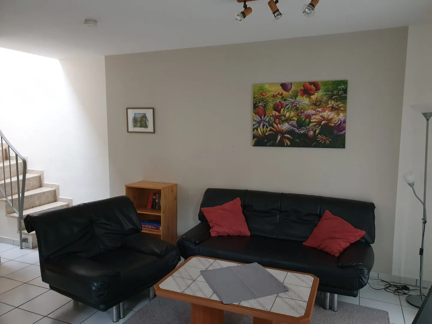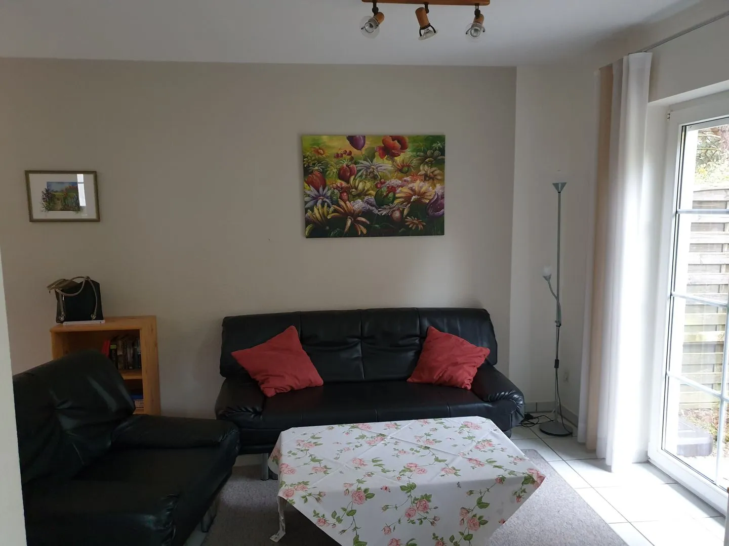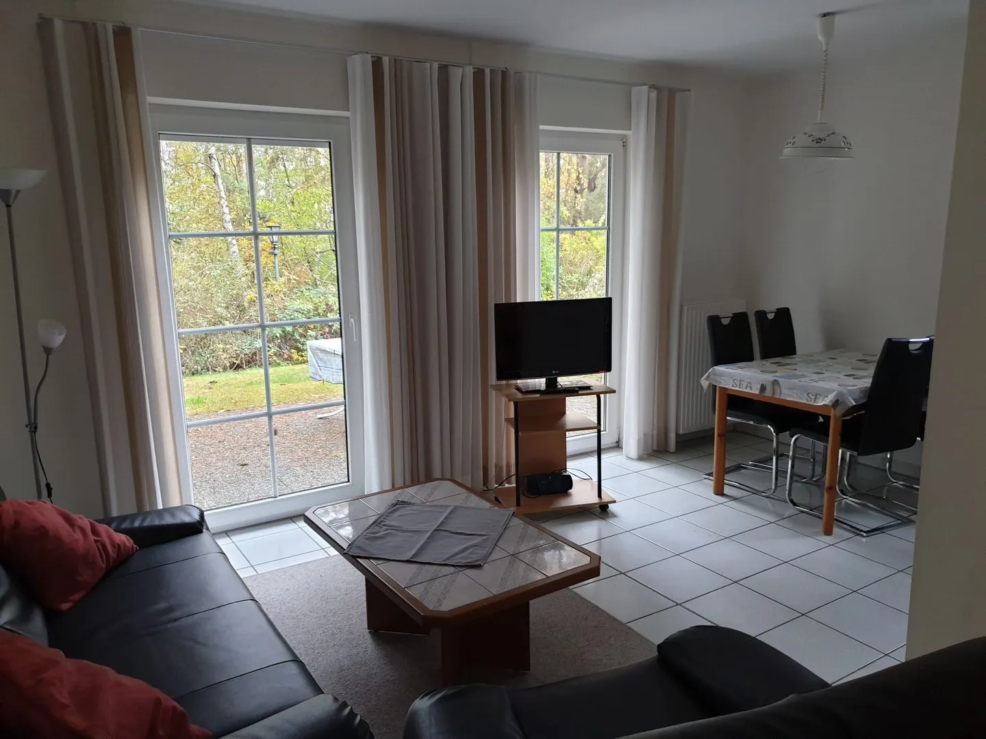 Im Wohnzimmer befinden sich eine Sitzgruppe mit