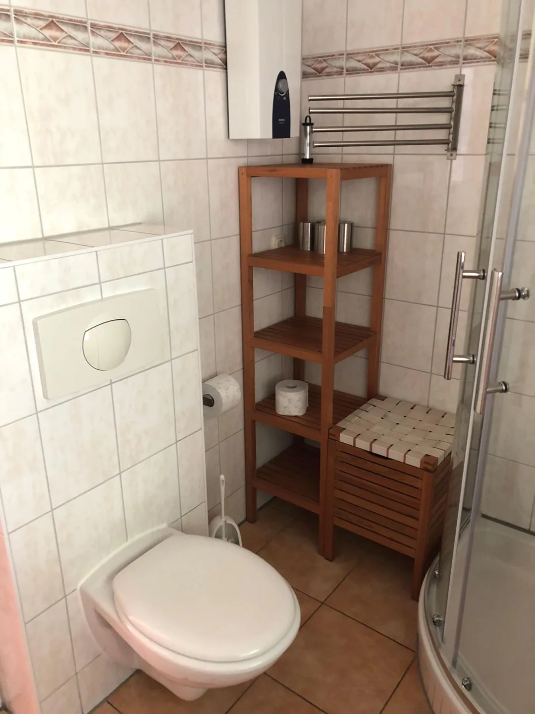 Im hellen und freundlichen Badezimmer befinden sich Dusche, WC und Waschbecken. Das Haus wird über eine Fußbodenheizung beheizt. Die große Holzterrasse am Haus ist mit Gartenmöbeln, Markise und einem Holzkohlegrill ausgestattet. Von hier aus blicken Sie sowohl auf den Plauer See als auch auf den Lenzer Kanal.