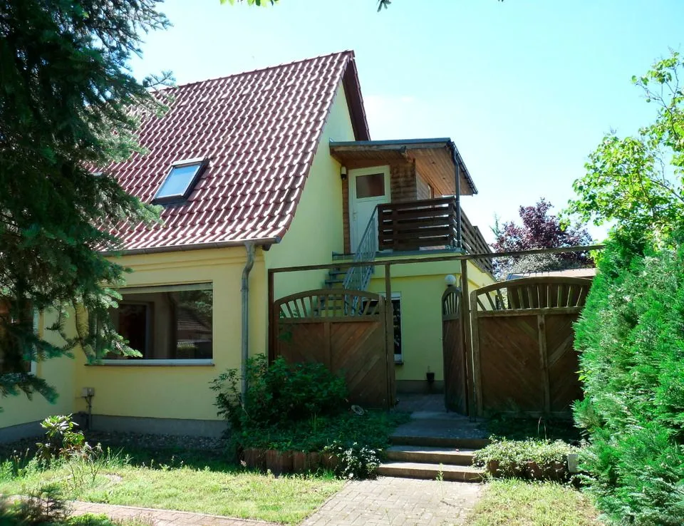 Lage: Die Ferienwohnung befindet sich in der Mecklenburgischen Seenplatte am Rande der kleinen Stadt Malchow. Die Wohnung liegt im Dachgeschoss eines Einfamilienhauses auf einem ca. 1000 m² großen, eingezäunten Grundstück mit Pool. Die untere Etage wird nur von den Vermietern gelegentlich selbst als Ferienwohnung genutzt.