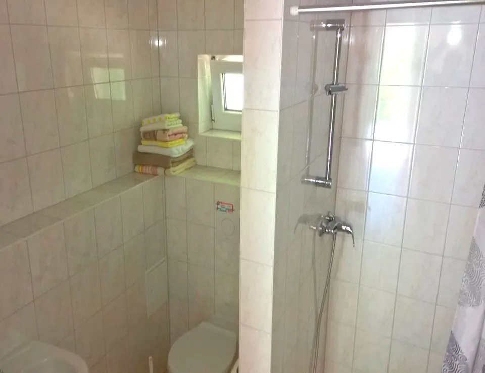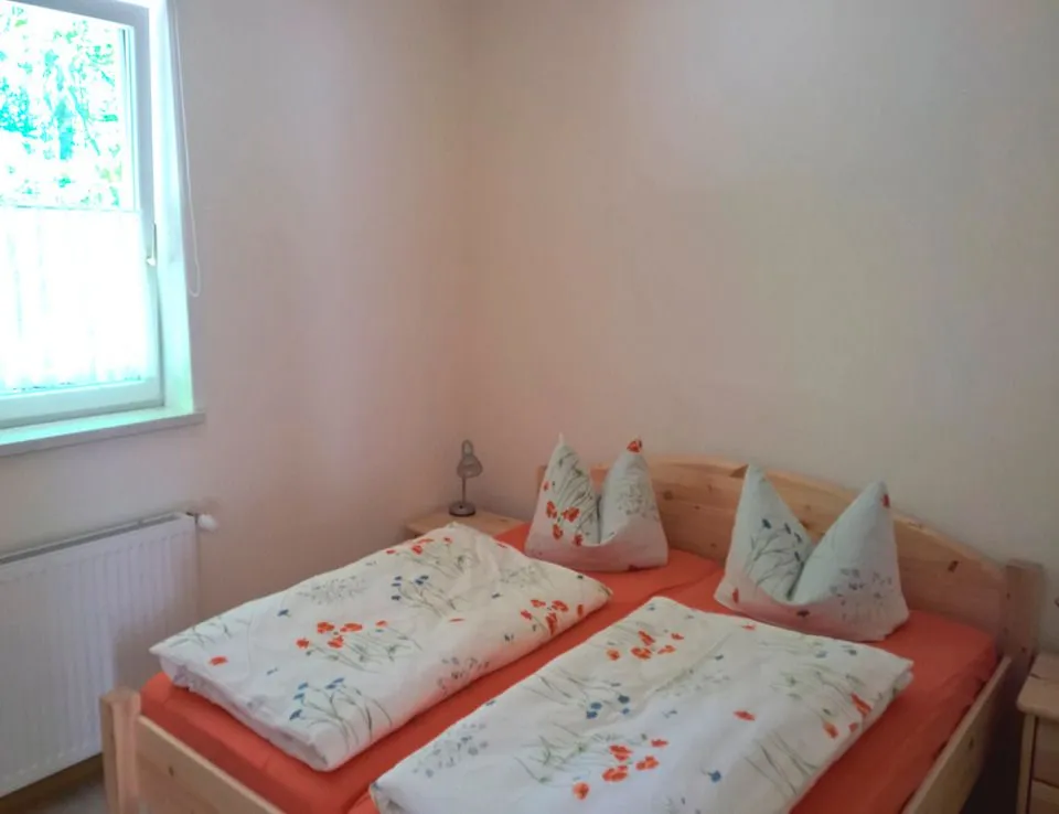 Sie betreten diese Doppelhaushälfte im Wohnbereich, der mit einer Anrichte, einem TV-Gerät, einer Schlafcouch und einem Couchtisch ausgestattet ist. Die Kochnische hat zwei Elektroherdplatten, einen Kühlschrank mit Tiefkühlfach, eine Mikrowelle, Kaffeemaschine, Toaster, Wasserkocher und einen Tisch mit zwei Stühlen. Das Schlafzimmer ist mit einem Doppelbett und einem Kleiderschrank eingerichtet. Im Bad ist eine Dusche und ein WC. Weiterhin steht Ihnen eine Terrasse mit Gartenmöbeln und Holzkohlegrill sowie ein PKW Stellplatz zur Verfügung. Ein Spielplatz und ein Fußballplatz sind in der Nähe.