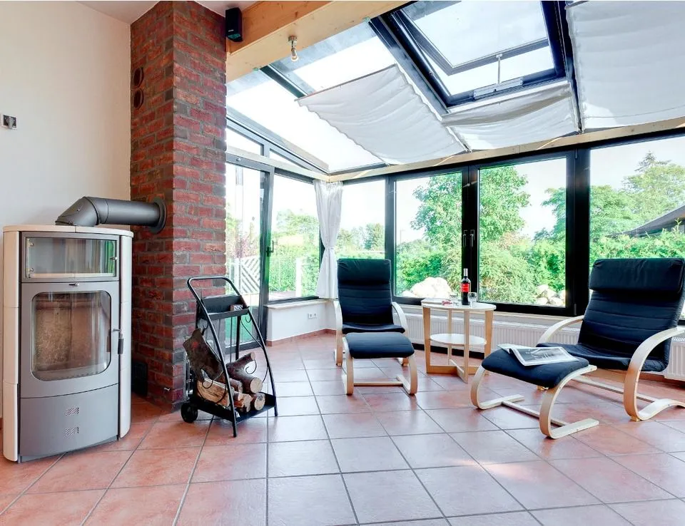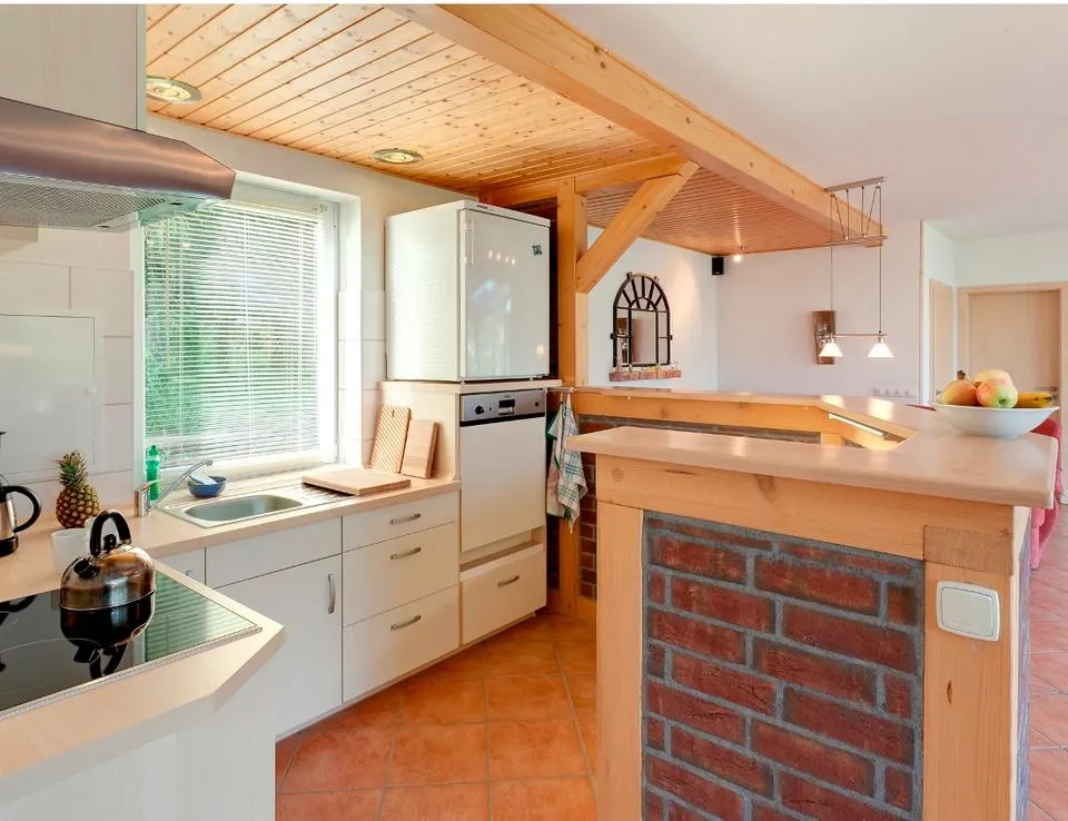 Das Ferienhaus am Krakower See in Serrahn betreten Sie über einen kleinen Flur mit Flurgarderobe. Von hier aus kommen Sie in das Gäste-WC und das große helle Wohnzimmer mit offener Küche. Dieses ist eingerichtet mit einer Eckcouch, einem Wohnzimmertisch, zwei Schwingsesseln, einem großen Flachbildfernseher mit einer 5.1 Surroundanlage, dem Kaminofen, einem großen Esstisch mit Stühlen und einem Kinderhochstuhl, einer Vitrine und der offenen Küche, die durch einen Tresen vom Rest des Raumes abgetrennt ist. Die Küche ist ausgestattet mit einem Geschirrspüler, zwei Kühlschränken, einer davon mit einem Tiefkühlfach, einem Backofen mit Cerankochfeld, einer Dunstabzugshaube, einer Mikrowelle, einem Spülbecken, einer Kaffeemaschine, einem Wasserkocher und einem Toaster. Von diesem Raum aus gelangen Sie in drei Schlafzimmer und in das Bad mit Sauna. In einem Schlafzimmer stehen zwei Betten mit einem Einbaukleiderregal und Abstellplatz für Ihre Koffer. Im zweiten Schlafzimmer finden Sie ein Etagenbett, ein Einzelbett und einen Wandklapptisch mit Hockern. Das dritte Schlafzimmer ist eingerichtet mit einem Doppelbett und einem Kleiderschrank. Im Bad gibt es eine Dusche, ein Waschbecken, das WC, Regale, eine Waschmaschine und die Sauna. Im Haus liegen für Sie ein paar Kinderbücher, Gesellschaftsspiele, Informationsmaterial zur Planung Ihrer Unternehmungen und sonstiges Wissenswertes aus. Im Garten, am Waldrand stehen ein Holztisch und - Bänke, sowie einen Elektrogrill zur Verfügung. Auf dem Grundstück gibt es zwei Parkplätze, weitere Parkplätze sind in der Nähe im Ferienhausgebiet.