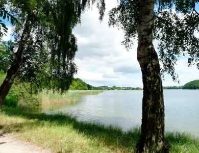 Das Ferienhaus befindet sich in einer Gartenanlage am Rande der Stadt Waren - Müritz, nur 200 m neben dem Strandbad. Über den hinteren Ausgang des großen natürlichen Gartens kommen Sie direkt auf den Müritzwanderweg und es sind nur noch 80 m bis zum Wasser. Im Umkreis von 400 m finden Sie eine Gaststätte, einen Bootsverleih und den Kletterwald. Das Stadtzentrum und der Stadthafen sind ca. 1.200 m entfernt. Dort können Sie durch die kleinen Geschäfte bummeln, vorbei an liebevoll sanierten Häusern bis zum Hafen mit seinem bunten Treiben. Für Sport- und Freizeitaktivitäten steht ein umfangreiches Angebot bereit. Am Stadtrand beginnt der Müritz-Nationalpark, der mit 318 m² der größte deutsche Nationalpark ist. Wander-, Rad- und Reitwege sind gut ausgebaut.